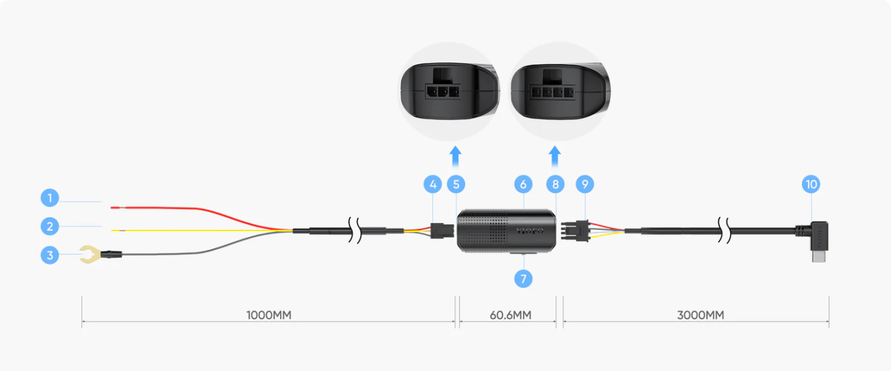 *Bu kablo, Type-C güç girişine sahip tüm VIOFO araç kameraları ile uyumludur. Lütfen HK6 hardwire kablosunun yalnızca GPS Type-C portuna bağlandığından emin olun.
