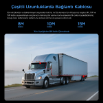 - 7.5 metre su geçirmez kablo ile esnek kurulum: Pickup kasası kenarından kabin içine kadar yeterli menzil sunar, kablo boyunca IP koruma seviyesi korunarak bağlantı güvenliği sağlanır